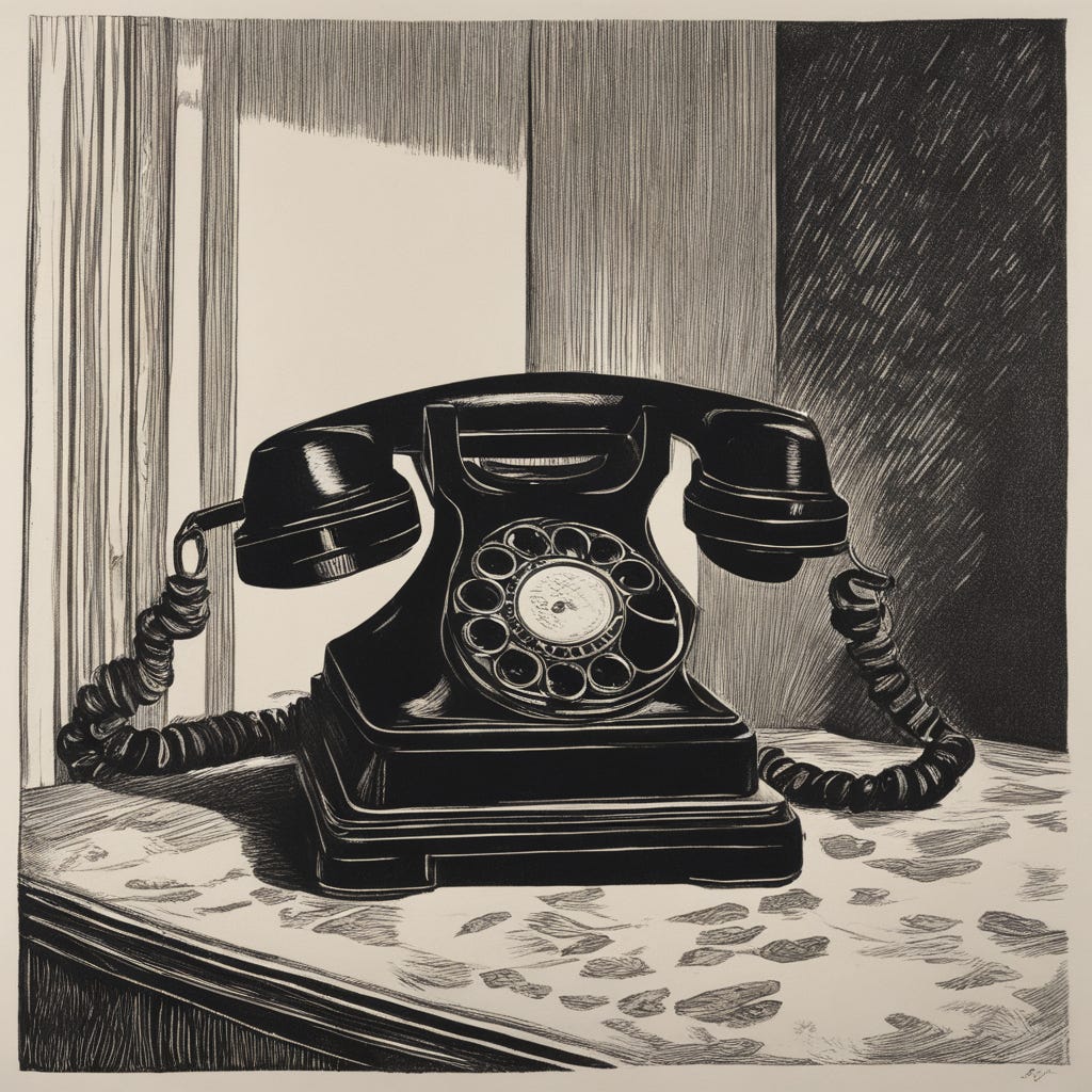 Ned drummed his gnawed fingernails on the moisture-warped surface. He stared down the land line phone sitting before him, daring it to ring. When it finally did, he nearly jumped out of his chair.